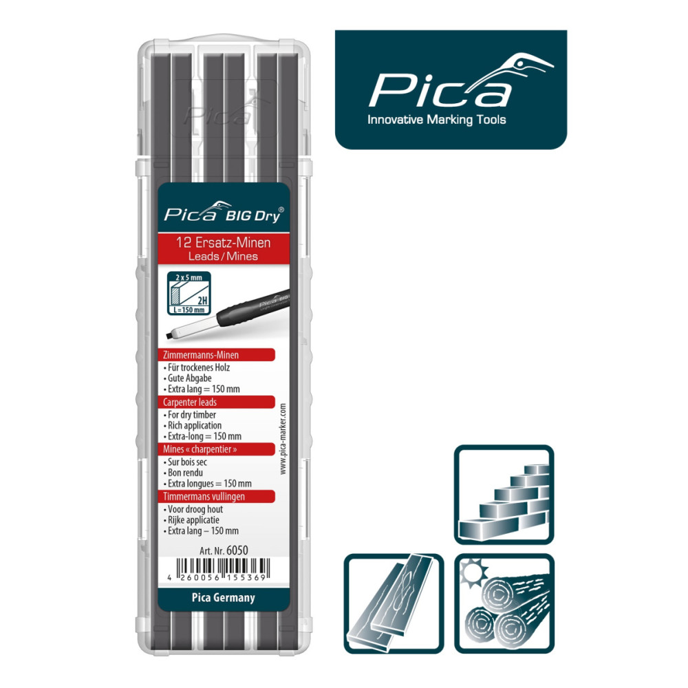 Набор сменных грифелей-стержней (12 шт) для карандаша Pica Big Dry Longlife