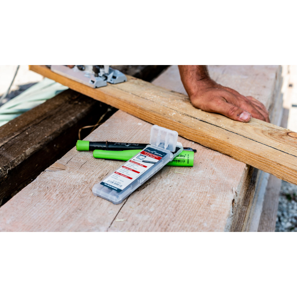 Набор сменных грифелей-стержней серого цвета от компании PICA (Германия) для строительных карандашей PICA BIG Dry Longlife Construction 6060. Исполнение 6050 - специальная серия грифелей для разметки сухой древесины. Твердость грифеля 2Н. Поставляются в удобной и прочной пластиковой коробке. Имеют прямоугольный профиль 2 x 5 мм и длину 150 мм. Каждый стержень хранится в отдельном отделении.