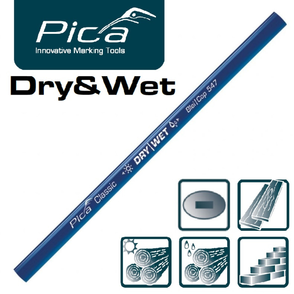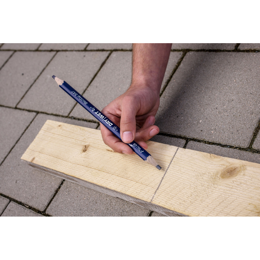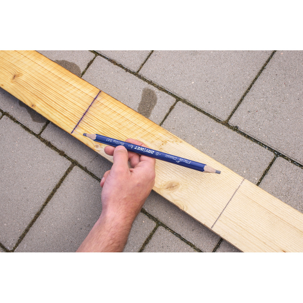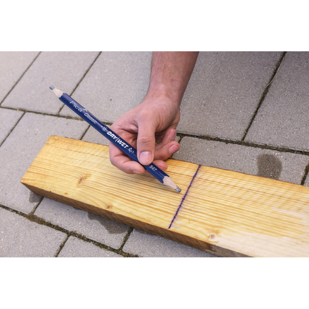 Специальный двухсторонний разметочный карандаш овальной формы от компании PICA (Германия) для нанесения разметки и маркировки на сухой и влажной (сырой) древесине. Изготовлен из качественной древесины. Сторона карандаша "WET": маркировочный карандаш ANILINE, для маркировки на влажной древесине - специальный графит с водорастворимым фиолетовым цветом. Сторона карандаша "DRY": графит 2H серого цвета для маркировки на сухой древесине. Легко точится. Длина 240 мм.