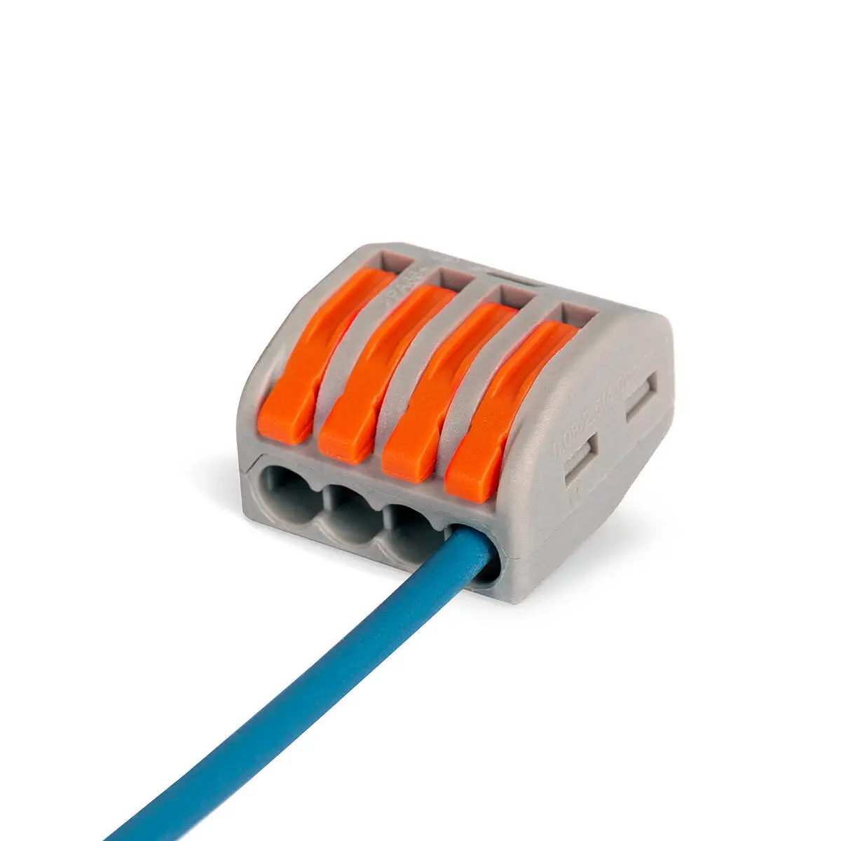 - Зажим проводов в клемме осуществляется при помощи оранжевых рычагов