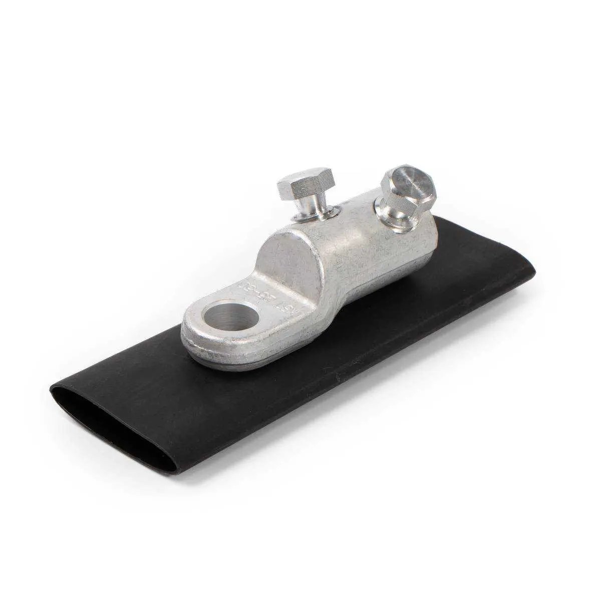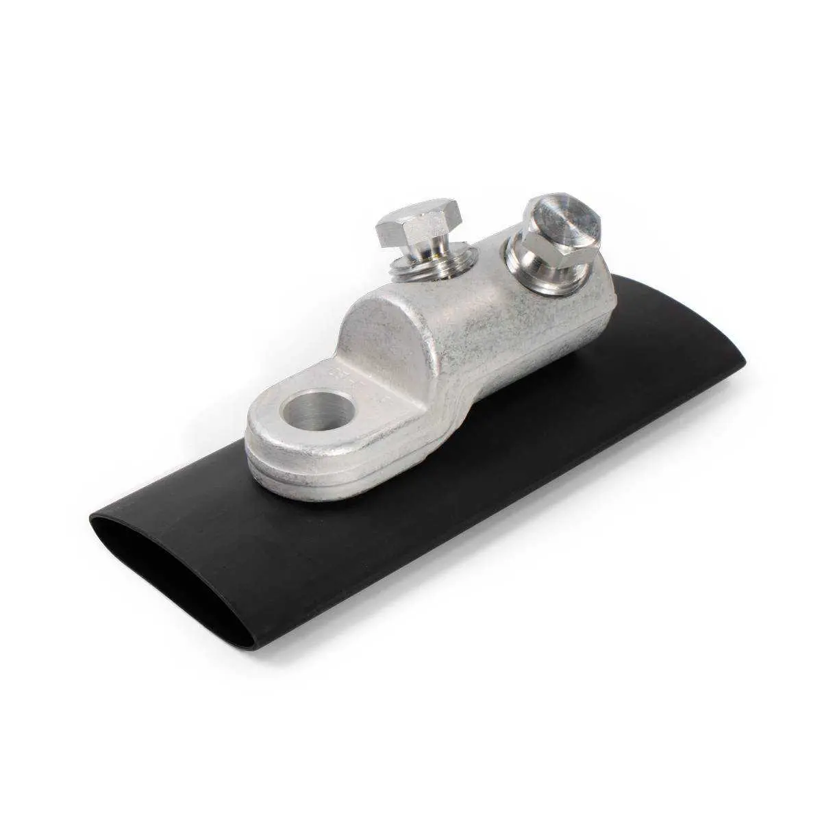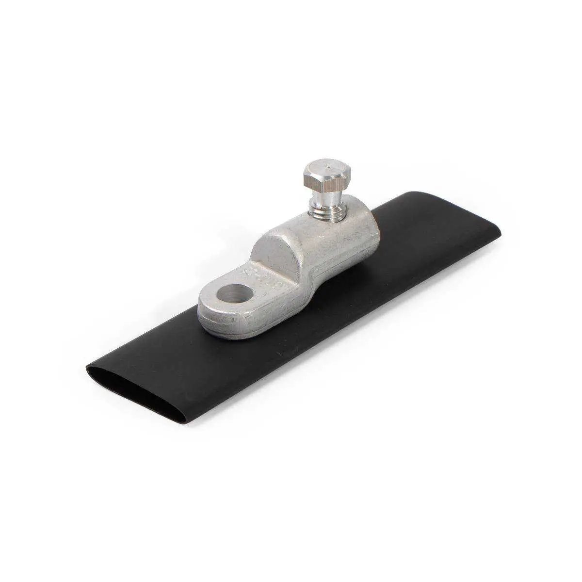 - Комплект состоит из болтового наконечника с угловым расположением болтов и термоусаживаемой манжеты с клеевым слоем