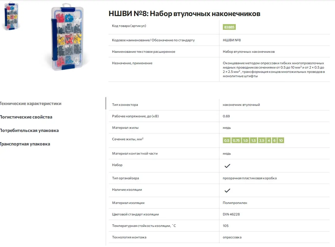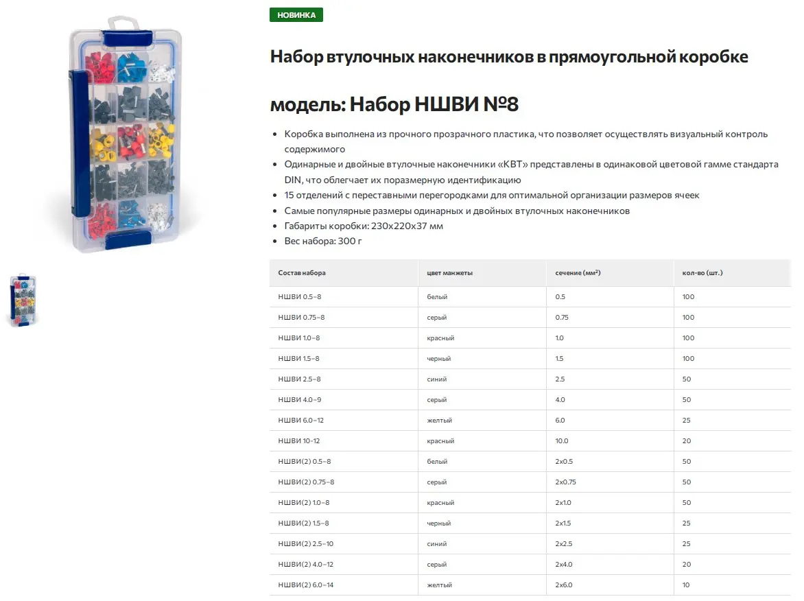 | НШВИ 0.5–8 | белый | 0.5 | 100 |