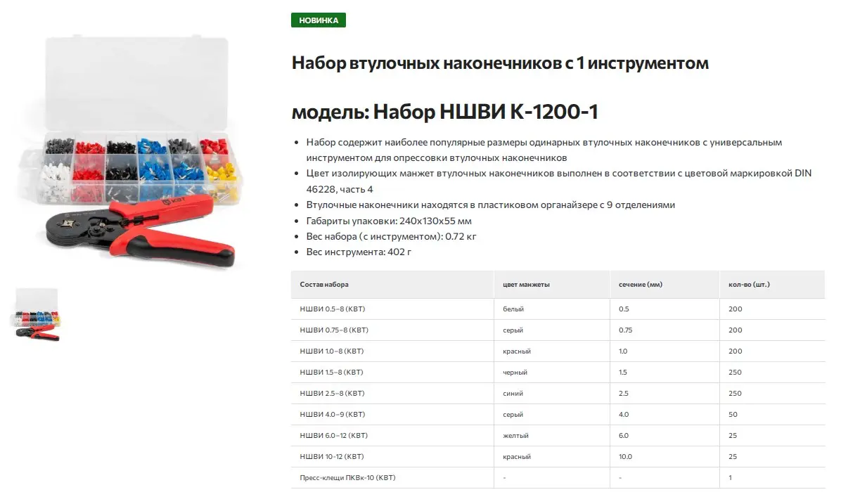 | НШВИ 0.75–8 (КВТ) | серый | 0.75 | 200 |