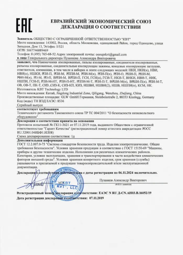 | НШВИ 2.5–8 (КВТ) | синий | 2.5 | 500 |