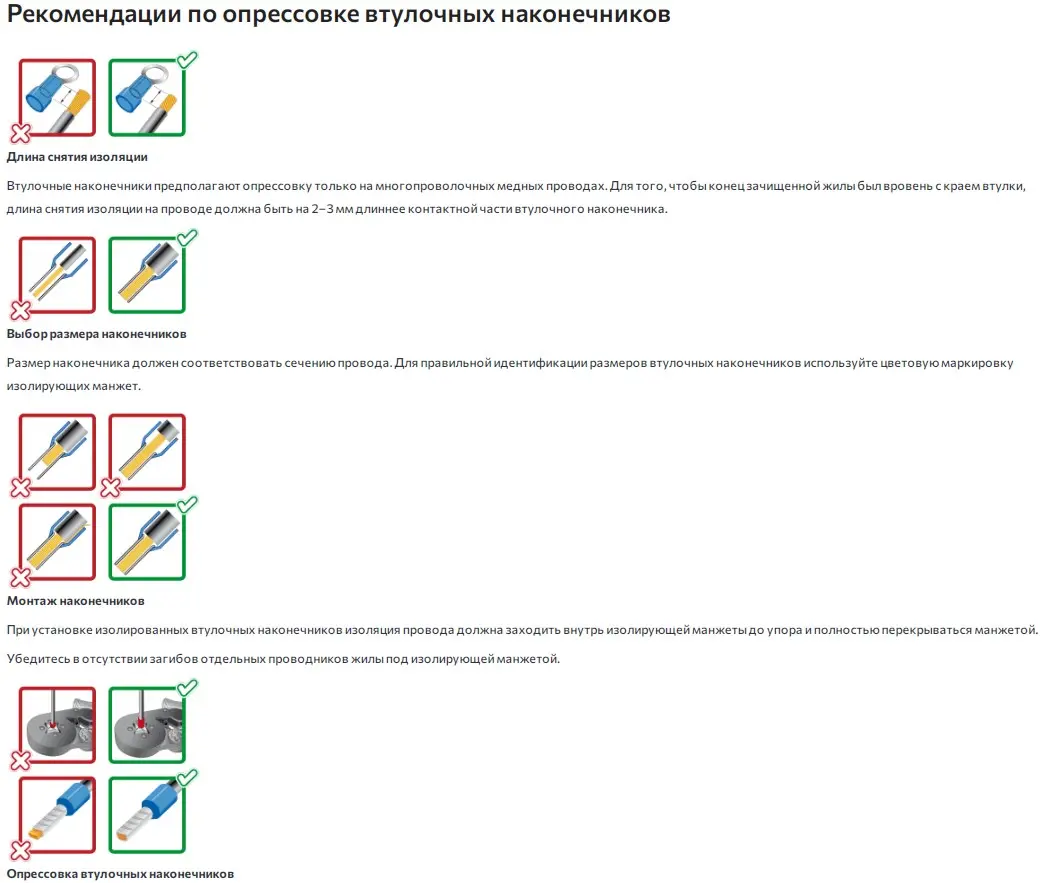- Цвет изолирующих манжет втулочных наконечников выполнен в соответствии с цветовой маркировкой DIN 46228, часть 4