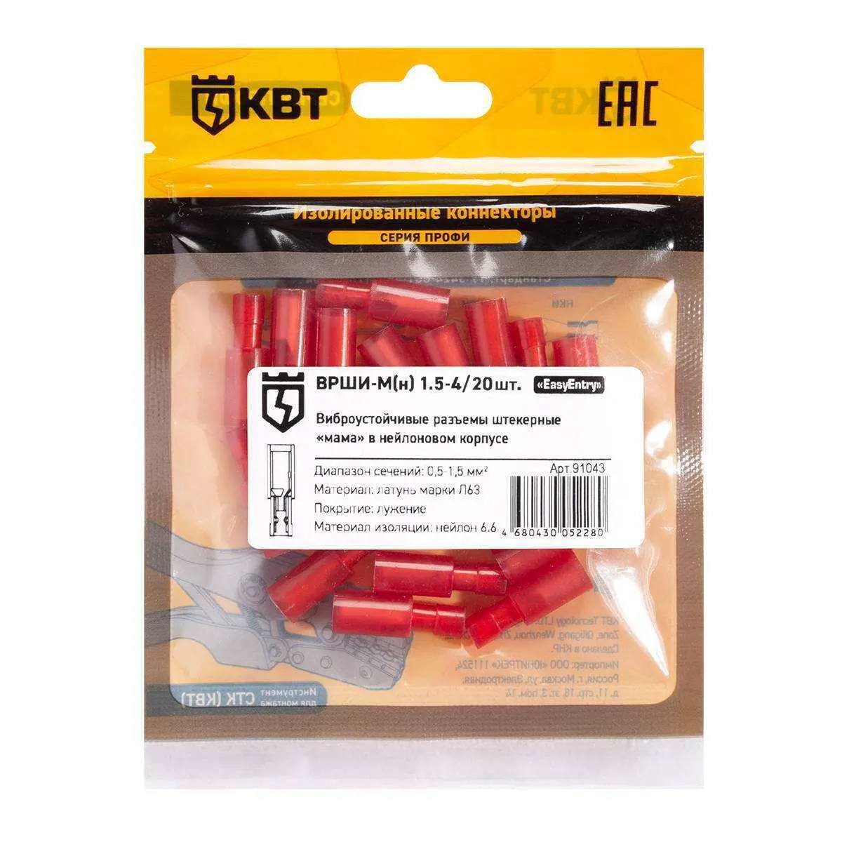0.4 | 0.5/0.75/1.0/1.5 | 3/4/5/6 | гальваническое лужение | латунь | красный | опрессовка | |
