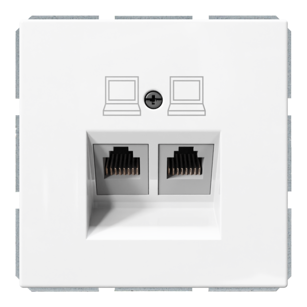 Розетка двойная компьютерная RJ45 cat 5 с накладкой - FD (белый глянцевый), артикул FD6106W