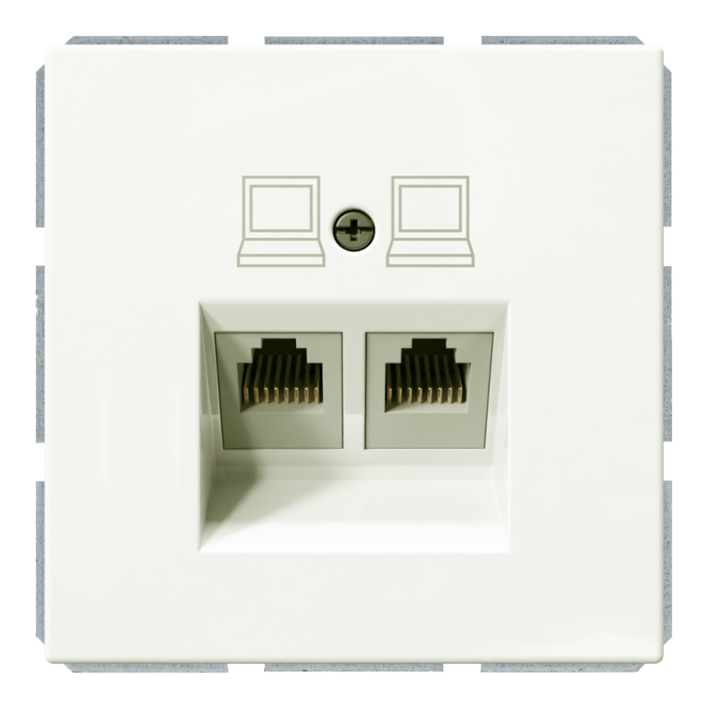 Розетка двойная компьютерная RJ45 cat 5 с накладкой - FD (белый матовый - soft touch), артикул FD6106PWM