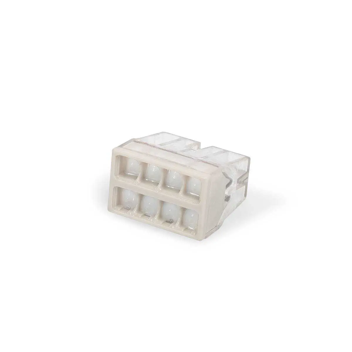 - Смотровые окна на корпусе клеммы дают возможность контролировать правильность зачистки проводников и защиту от касаний