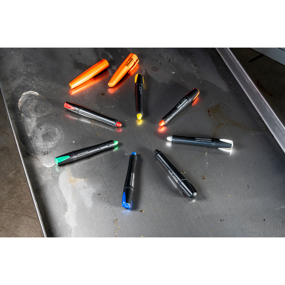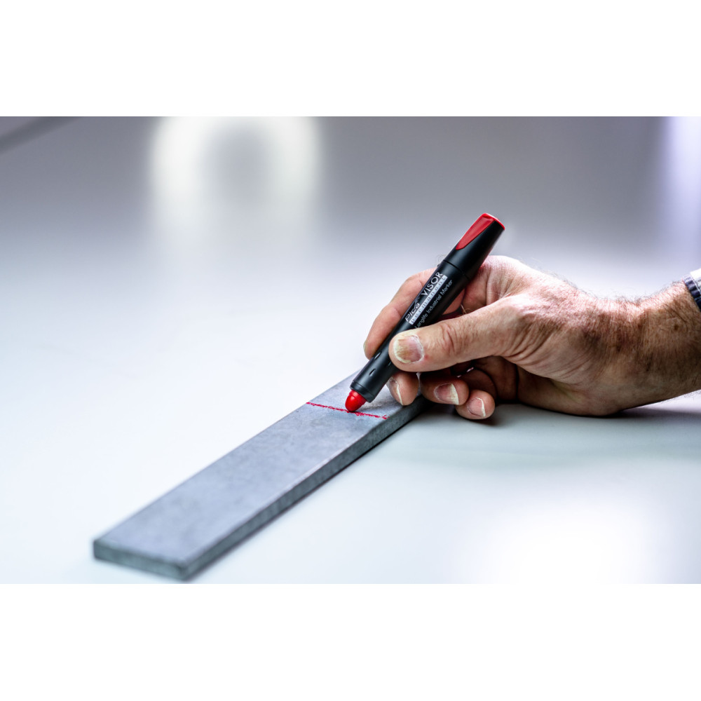 Профессиональный сухой промышленный маркер белого цвета Pica Visor Permanent Building Crayon Marker 990/52 (Германия) оптимально подходит для нанесения маркировки на влажном, сухом, чистом, запыленном или замасленном материале. Выполнен на основе перманентного воскового карандаша. Заменяет до 5 обычных маркеров. Диаметр стержня - 10 мм, длина - 85 мм. Стержни никогда не пересыхают. Позволяет наносить разметку на любых материалах - от глянцевых до матовых и шероховатых поверхностей - на дереве и ламинате, стекле и плитке, пластике и металле, резине и коже, даже на офисных досках. Надежный и долговечный винтовой механизм подачи стержня, быстрая и простая смена стержня, держатель с фирменной клипсой.